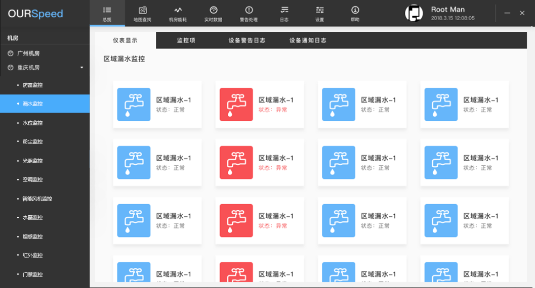 監測對象:對的空調的冷凝水、窗戶和易漏水等位置進行監測,且實時報警。