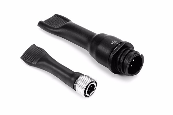 3、感應線在對接過程中,請注意公母接頭針腳順序,對準孔位輕輕插入再順時針鎖緊螺環即可(逆時針方向解鎖)。