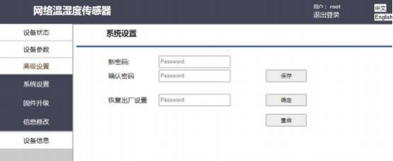 用戶在系統設置界面可以更改 Web 登陸賬號密碼 ,以及對設備進行出廠恢復操作,出廠恢復設置密碼與 Web 登陸密碼一致。